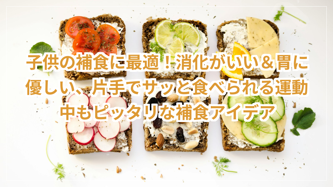 この記事では、栄養も考えた子供向けの補食アイデアをいくつか紹介します。これらのスナックは、片手で食べやすく、運動を妨げることなく、子供たちのエネルギーをすばやく補給するのに役立ちます。